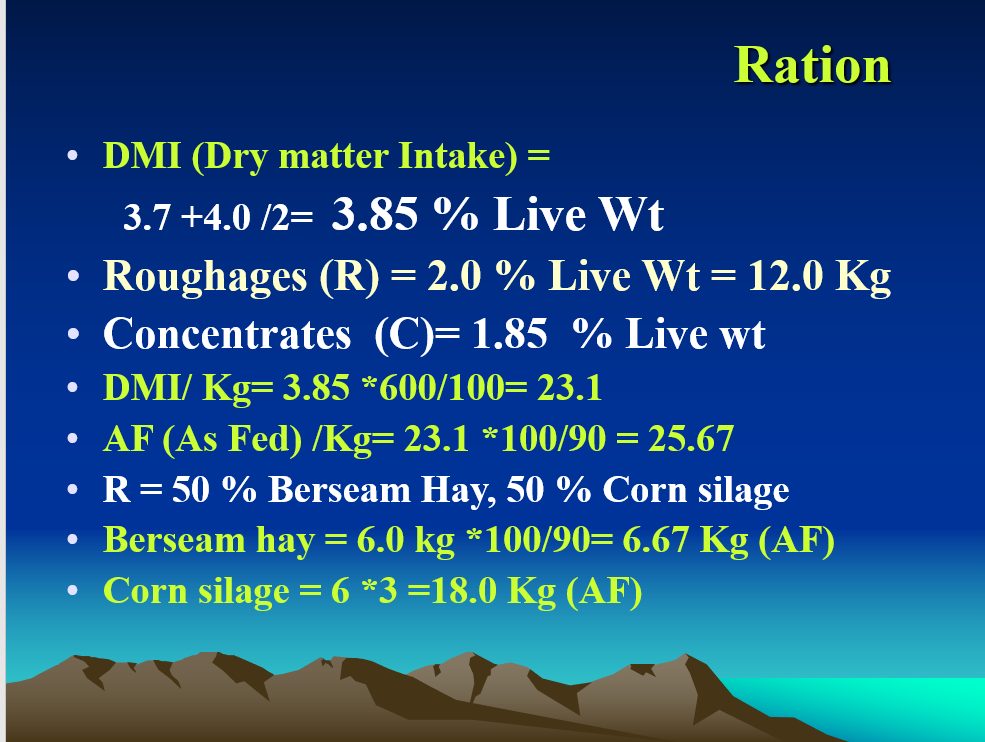 A detailed explanation of the calculation methods using laws and equations in order to estimate the appropriate amount of ingredients and elements used for the nutrition of dairy cows properly nutrition, which ensures the highest productivity